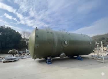 These dual-layer tanks use premium liners for extreme chemical resistance inside a strong FRP shell. They handle the toughest acids, solvents, and high temperatures better than standard thermoplastics. These custom tanks ensure leak-free performance in demanding industries, with liners 2-5mm thick bonded to FRP for safety.